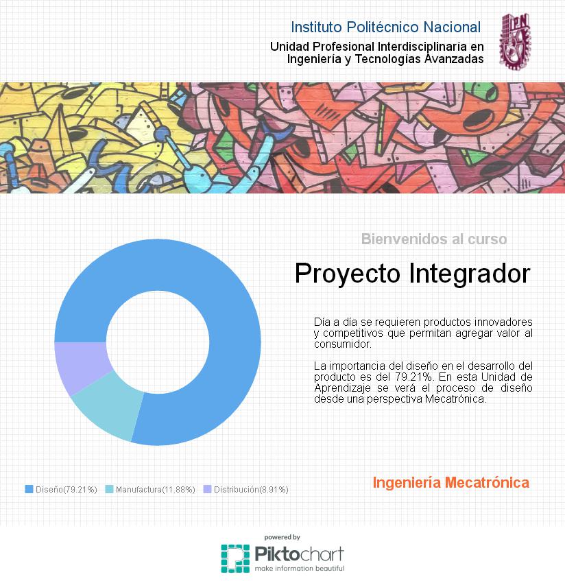 El Instituto Politécnico Nacional te da la bienvenida al curso Proyecto Integrador, perteneciente a la carrera de Ingeniería Mecatrónica. Este curso te permitirá conocer el proceso de diseño mecatrónico y mediante el un proyecto podrás desarrollar tus habilidades y competencias de diseño, síntesis, análisis y documentación empleando herramientas tecnológicas.